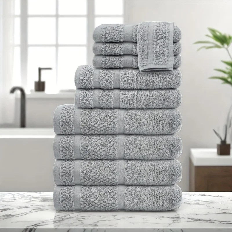 10pcs Bath Towel Set 4pcs Bath Towels&2pcs Hand Towels&4pcs Washcloths Solid Color Cotton Towels Absorbent Quick-drying