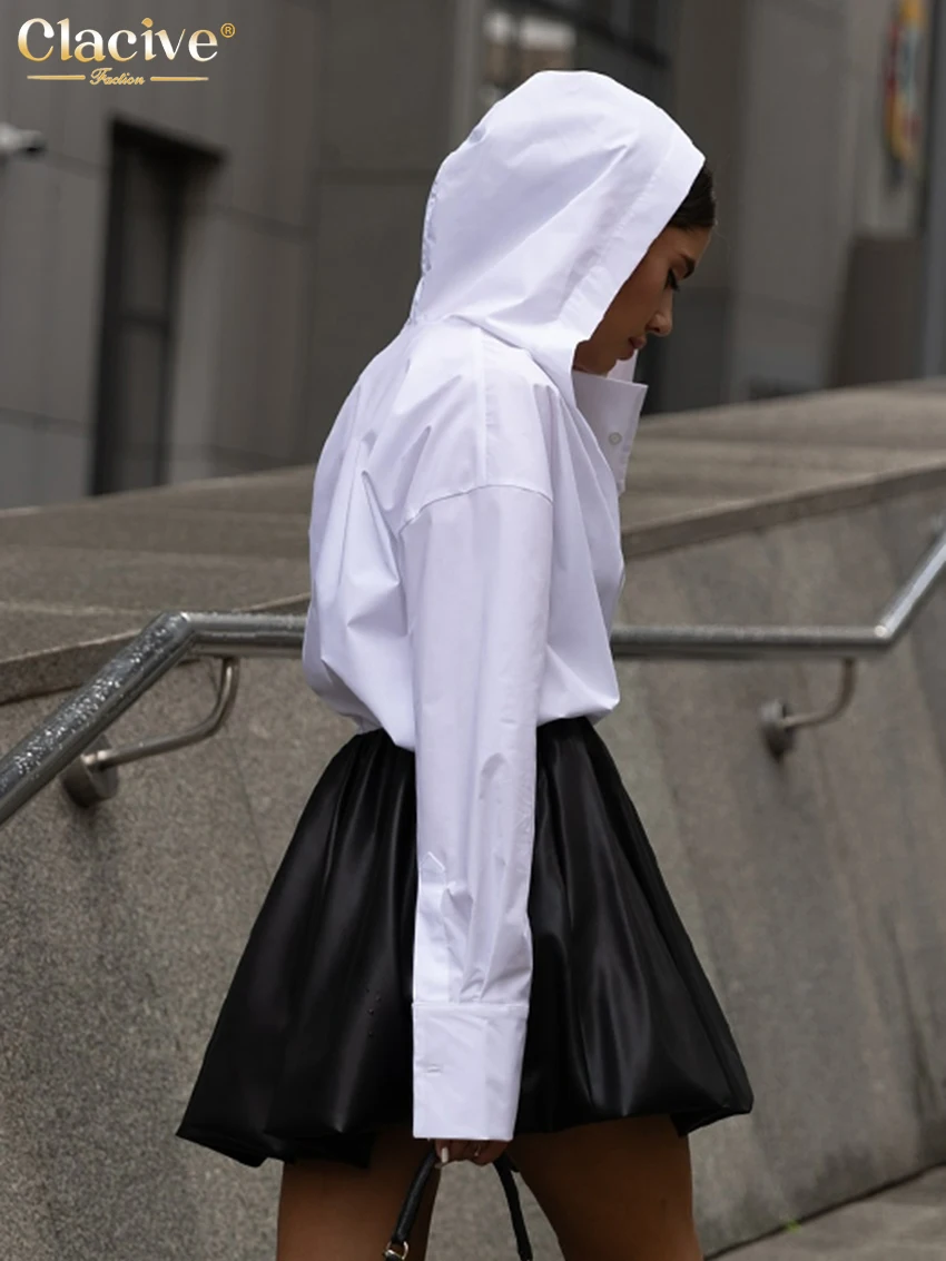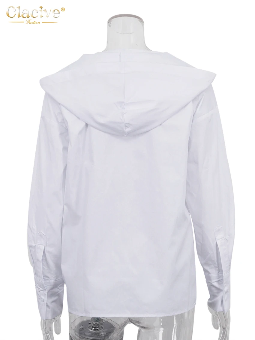 Clacive Fashion Loose White Cotton Women’s Shirt 2025 Elegant Hooded Long Sleeve Blouses Streetwear Solid Top Female Clothing