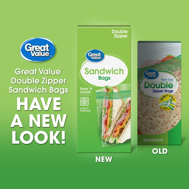 About this itemProduct detailsGreat Value Fresh Seal Double Zipper Sandwich Bags make packing up lunch or a snack for the road simple and easy. The bags are clear so that you can easily distinguish what has been packed away inside and their resealable top features two times the zippers for two times the protection. Great Value Fresh Seal Double Zipper Bags are useful for packaging single-serving snacks, gift packs and pantry organizations. Whether it’s packing up for lunch, storing away leftovers for later enjoyment or making sure your various household and travel items are organized, these bags offer the convenience you’ve been looking for. Keep your items fresh with these Great Value Fresh Seal Double Zipper Sandwich Bags. Great Value products provide families with affordable, high-quality grocery and household consumable options. With our wide range of product categories spanning grocery and household consumables, we offer you a variety of products for your family’s needs. Our products are conveniently available online and in Walmart stores nationwide, allowing you to stock up and save money at the same time.