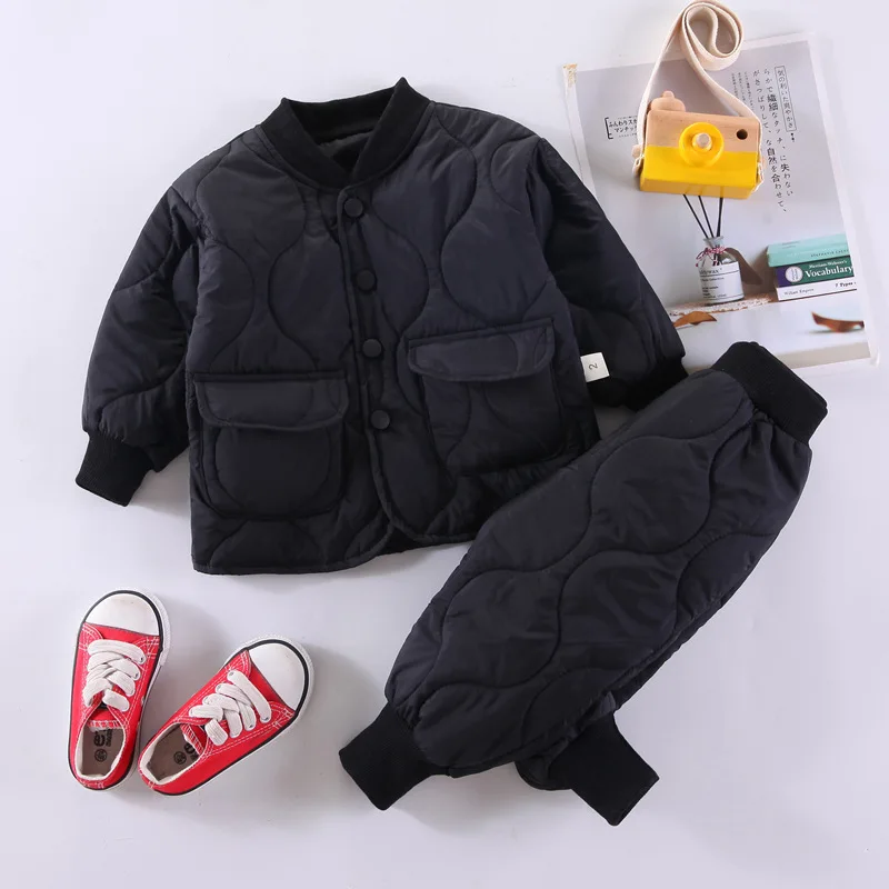 Korean version Baby Boy Clothes children’s thickened insulation with cotton clip winter set suitable for baby top jacket+pants
