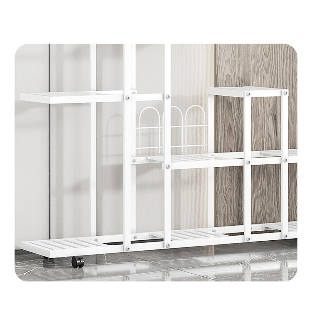 Plant Stand Indoor Outdoor, Wrought Iron Multiple Planter Rack Organizer w/Wheels Flower Display Stand For Corner Balcony Garden